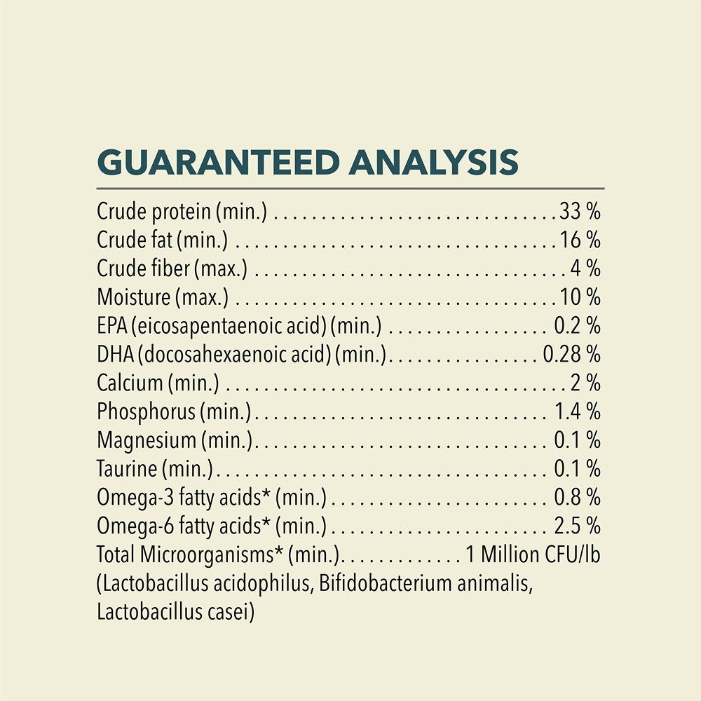 With 65% animal ingredients, this recipe is packed with high-quality protein to help maintain lean muscles and overall vitality. Fibre and probiotics promote digestive balance, while taurine, EPA, and DHA support healthy eyes and heart function. Omega-3 and omega-6 fatty acids from fish help maintain a shiny coat and nourished skin. Suitable for adult cats of all breeds, this recipe is ideal for supporting heart health, eye function, digestion, and immune strength. Not recommended for kittens or cats with special protein-restricted diets.