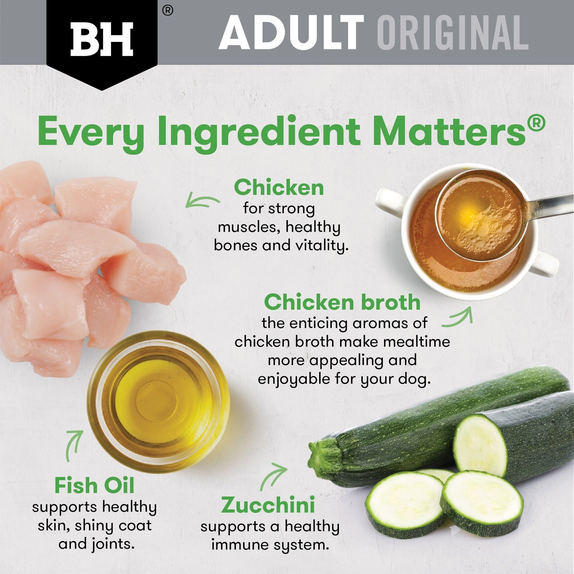 If you like rotating textures to keep your dog interested in meals, this recipe delivers nourishment in a rich, savoury broth while remaining gentle and easy to digest. Made with the support of veterinarians and animal nutritionists, it uses chicken as a highly digestible protein to help maintain strong muscles and bones, with added fish oil to support healthy skin, a shiny coat, and joint function. Eggs contribute nutrients that assist normal liver function and muscle maintenance, while zucchini provides antioxidants to help support immune health. This recipe is suitable for adult dogs of all breeds, ideal for those needing extra palatability or hydration in their diet, and not recommended for puppies or dogs requiring specialised veterinary diets.