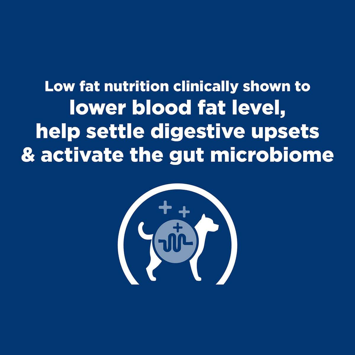 Hill's Prescription Diet i/d Low Fat Canned Dog Food is great tasting nutrition with highly digestible protein formulated to help settle digestive upsets in dogs that need a low fat formula. Fortified with Hill's breakthrough ActivBiome+ ingredient technology clinically shown to rapidly activate the gut microbiome to support digestive health and well-being. It also includes omega-3 & -6 fatty acids and ginger.