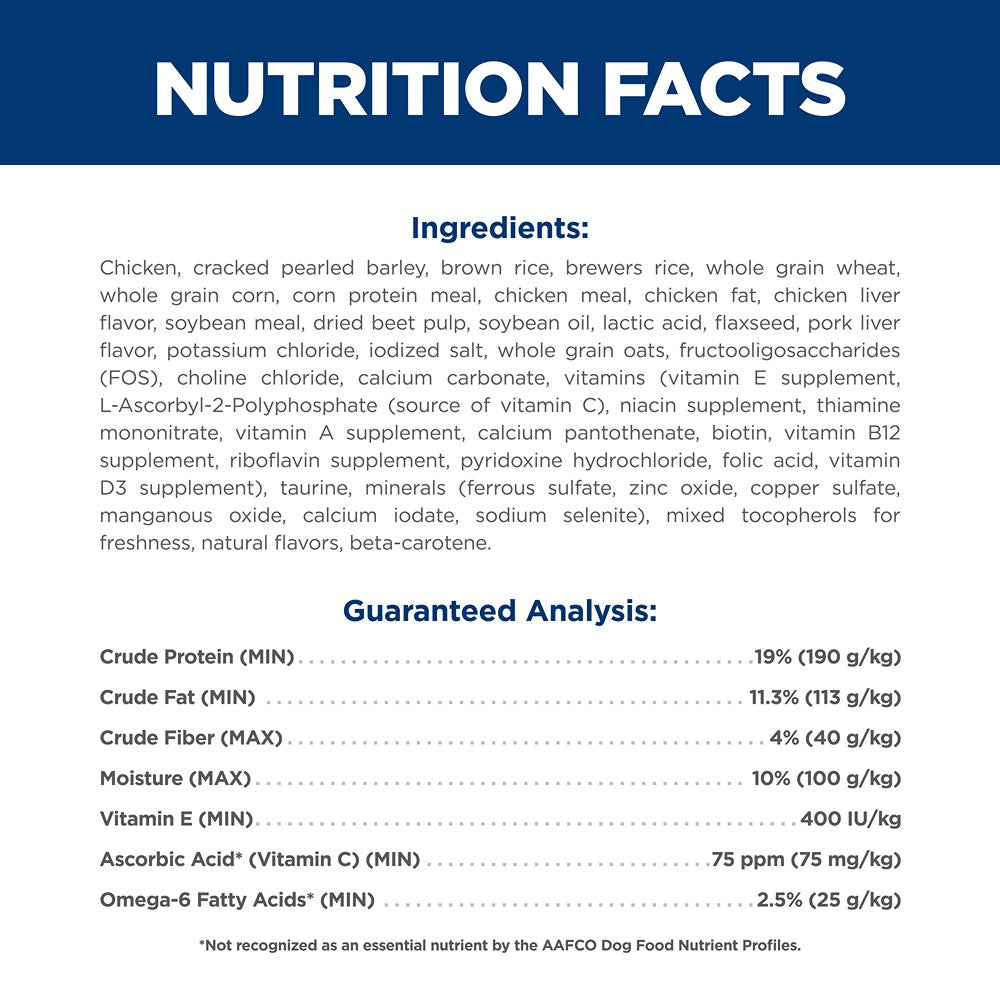 Hill's Science Diet Adult dry dog food provides high quality, easy-to-digest ingredients that fuel the energy needs of your adult dog. Packed with omega-6s & vitamin E to give your dog a healthy skin & coat, this premium dog food made with natural ingredients also provides high-quality protein to help your full grown dog maintain muscle. Since adult dogs need a strong gut, this grown dog food uses natural fibres to promote healthy digestion.