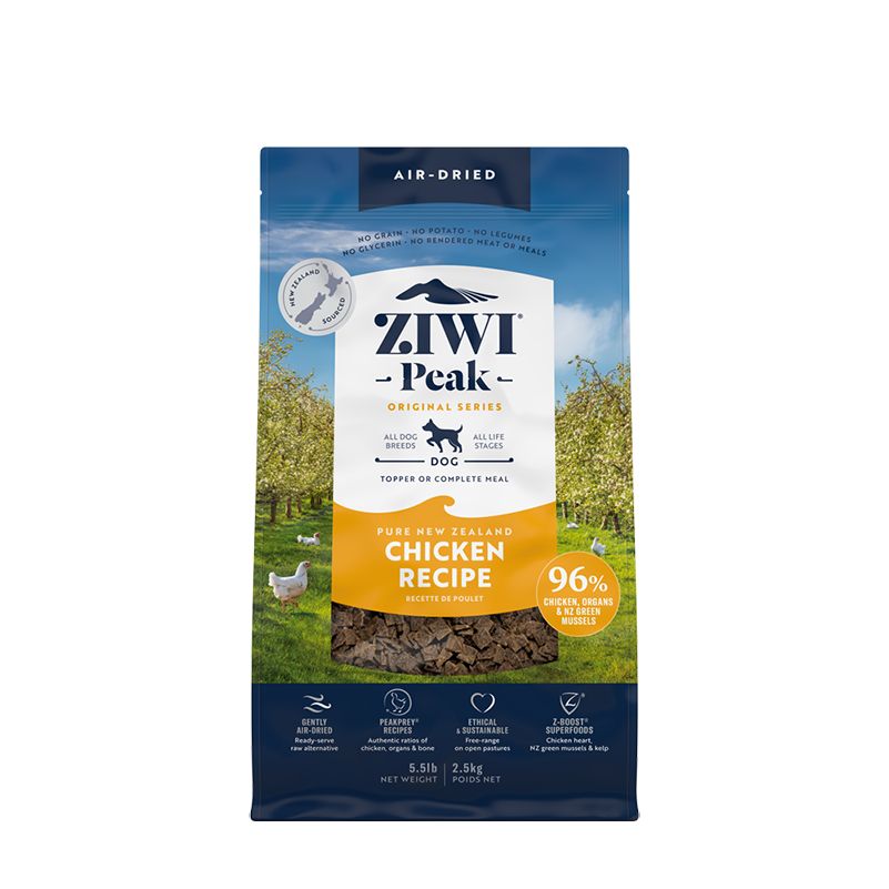 Ziwi Peak Air Dried Chicken Recipe Dry Dog Food is crafted as a natural, complete, and balanced meal for dogs of all breeds and all life stages, designed to mirror the high-meat ancestral diet dogs are biologically adapted to. Made with nutrient-rich air-dried chicken, this recipe is suitable for dogs with food sensitivities and ideal for supporting healthy digestion, sustained energy, strong muscles, and overall wellbeing through easily absorbed, evolutionary-aligned nutrition; it is not recommended for dogs requiring a low-protein therapeutic diet.